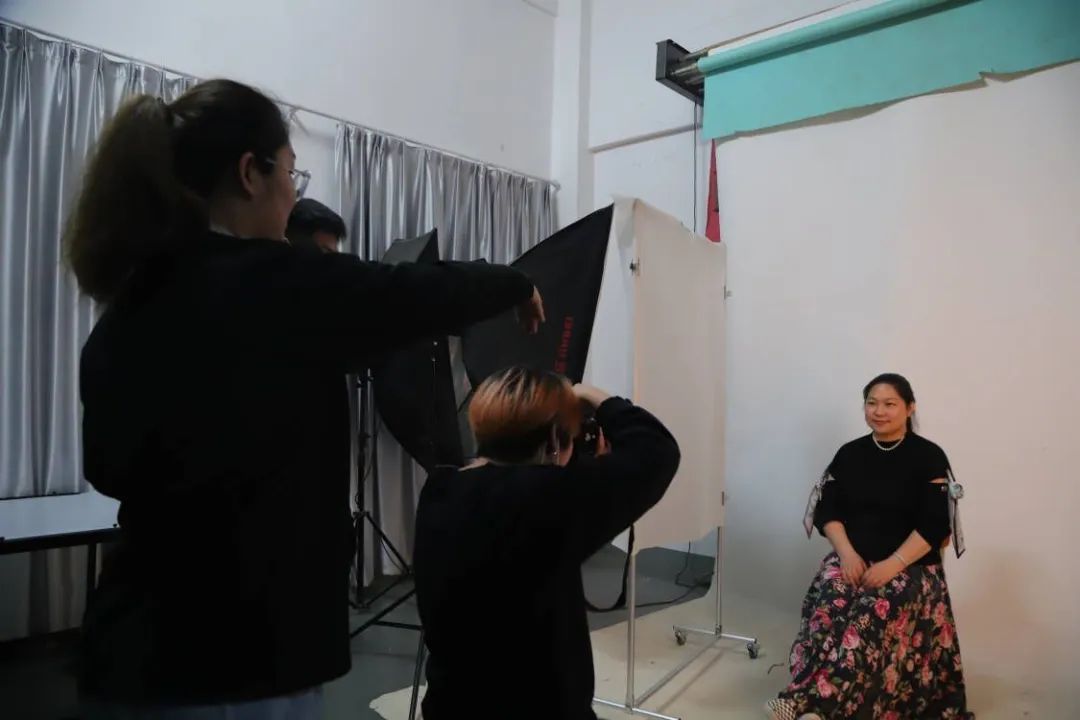 5月11日上午,实训楼六楼摄影棚内,在赵璐然老师的指导下,广播影视节目制作专业的同学为前来的师生免费拍摄登记照,服务全校师生。他们现场组织、拍摄、修图、记录等,短短一上午服务30多位师生,赢得大家的一致好评。