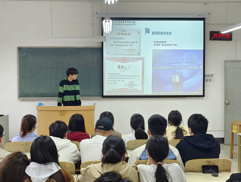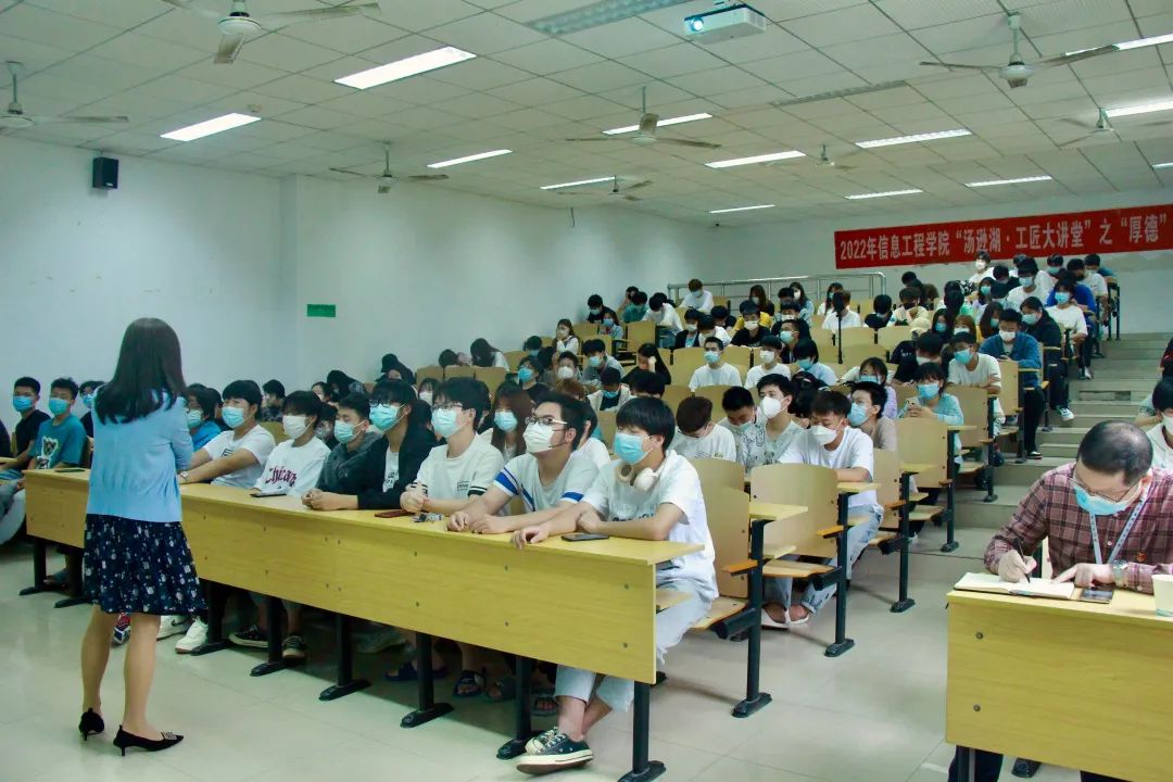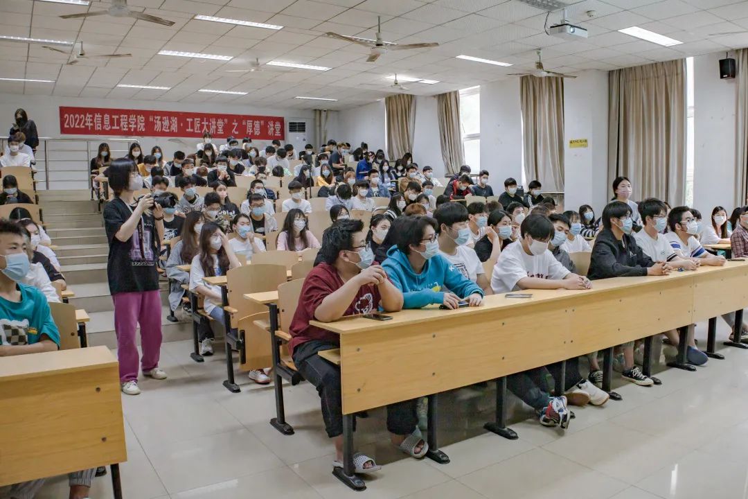 信息工程学院还开展“汤逊湖?工匠大讲堂”活动,用榜样人物和典型事迹引领青年学子把小我融入大我,融入中华民族伟大复兴征程,进一步坚定“技能强国,必定有我”的信念。