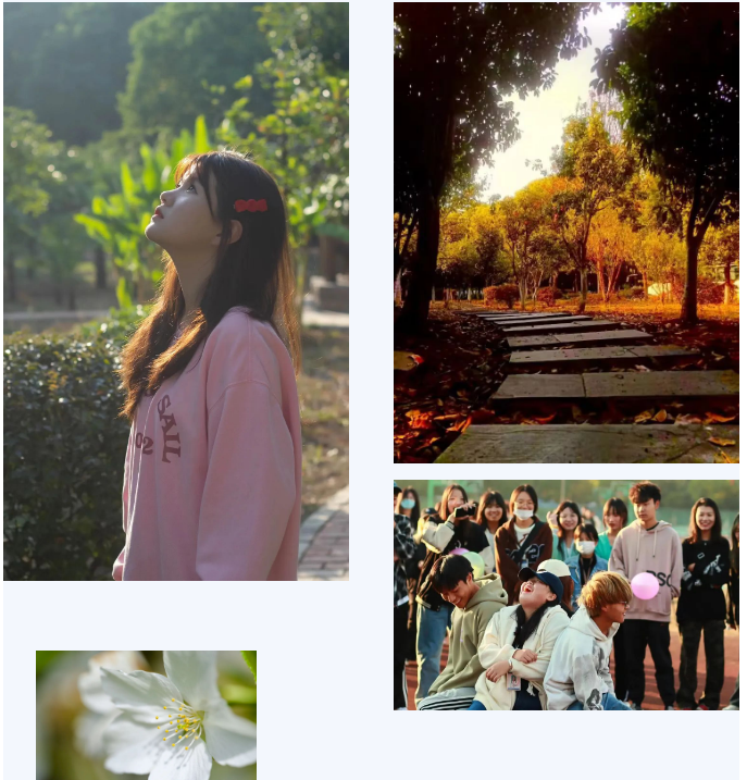 拿起相机、摄像机、反光板,寻找光与影,校园里的花花草草,武信的角角落落,校园里的汉服美秀,青春活力的武信学子……都成为传播与策划专业、广播影视节目制作专业学子的拍摄对象。在“武信之美,我打卡”活动中,大家一起感知美、发现美、记录美,用行动诠释“技能,让生活更美好”。