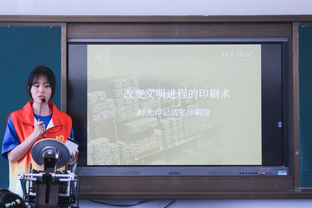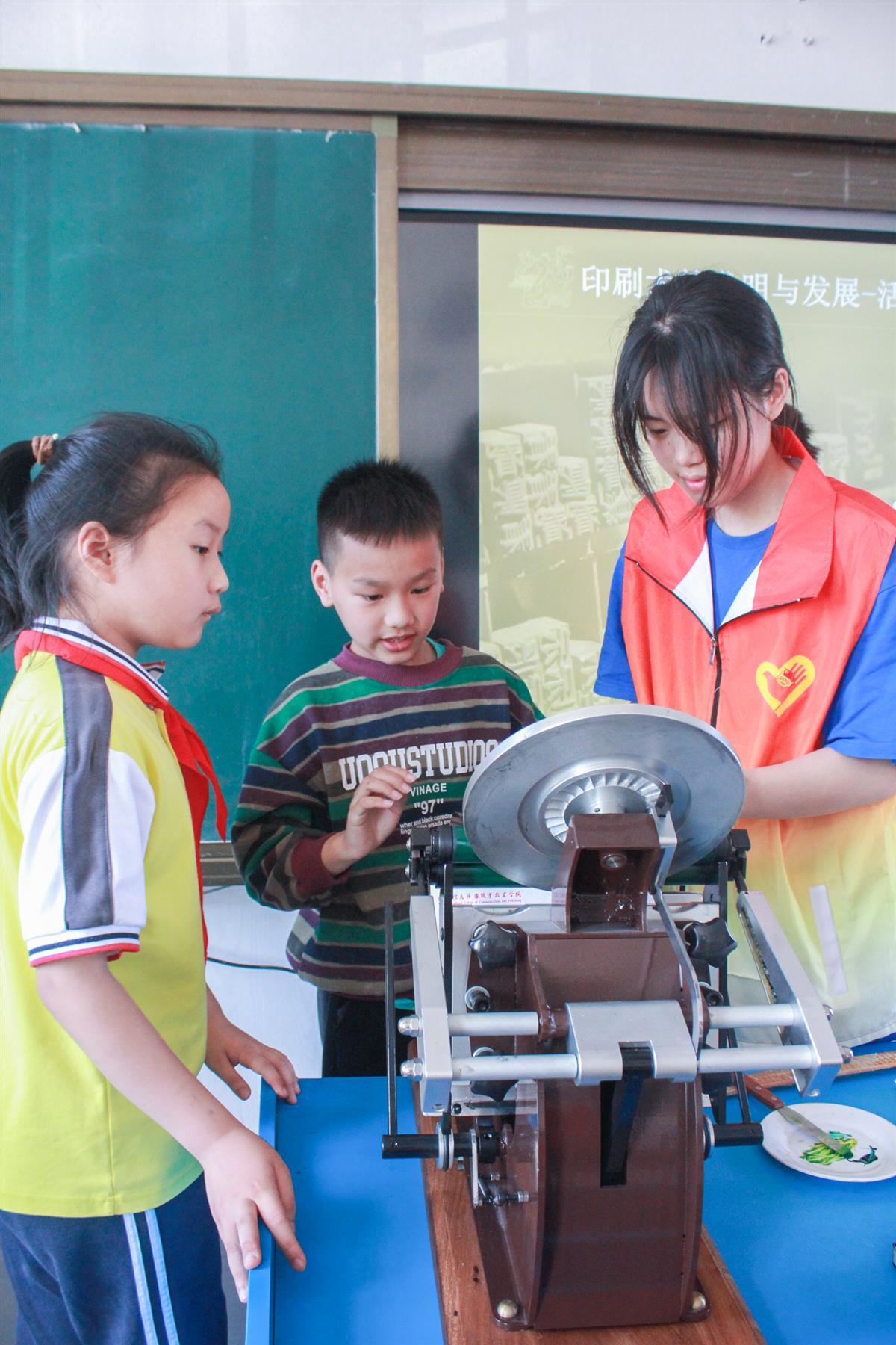 “从符号到文字,文字的载体一直在变革。毕昇发明的活字印刷术是一次伟大的技术革命。”印刷文化馆讲解员、2022级印刷数字图文技术专业陈杰,向小朋友介绍了中国印刷术的历史起源、发展和技术革新等知识。“小朋友们听得好认真。从他们渴求的眼神中,感觉他们对中国印刷文化充满着好奇。”陈杰说。