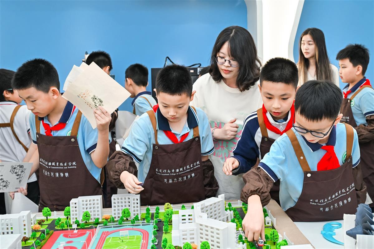 聆听毕昇的故事,学习印刷历史,触摸老机器,体验拓印……5月30日下午,武汉信息传播职业技术学院印刷文化馆里迎来了一群小学生,湖北华宜寄宿学校四年级(1)班40余名小学生带着好奇心,“打卡”、研学、过“六一”,探秘古今印刷,感受非遗魅力。这也是该校印刷文化馆上线“百校百馆”后,举办的六一儿童节专场活动。