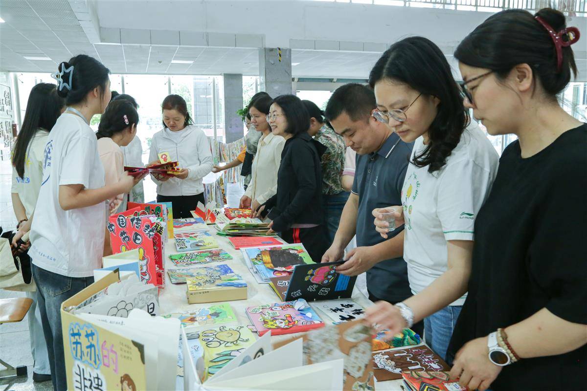 “这个是我以二十四节气为元素创作的立体式绘本。”自制绘本展示台前,2023级学前教育专业徐妙妙开心地向参观者介绍创作的巧思:“抽拉成型,互动粘贴,这样立体式的设计,可增强幼儿教育的趣味性和吸引力。”