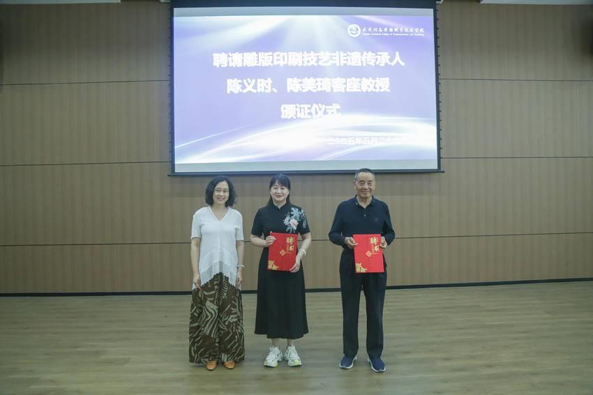 当天,该校与中国雕版印刷技艺国家级非遗传承人陈义时大师团队正式签约,学校聘请陈义时大师为工作室主持人、陈义时大师及其传人陈美琦为客座教授,“中国雕版印刷技艺国家级非遗传承人陈义时大师工作室”正式落地武信职院。