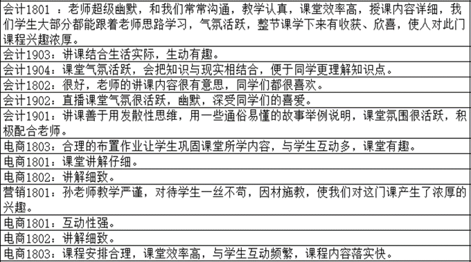 网络教学要求一出台后,会计教研室主任冯巍老师就第一时间早早地研究起直播教学,成为商学院最早下水尝试直播的“吃螃蟹者”。她结合自身前期积累的直播及网络教学经验,反复修改敲定专业教学安排,落实各项教学计划,制定各专业课程表,优化线上教学细节。在她的带领下,会计专业和互联网金融专业共17门课程各项安排适宜妥当,老师们网课也从毫无头绪到运用自如,各项工作走上了正轨。一个月来,冯老师也成为商学院加班最多的老师之一。