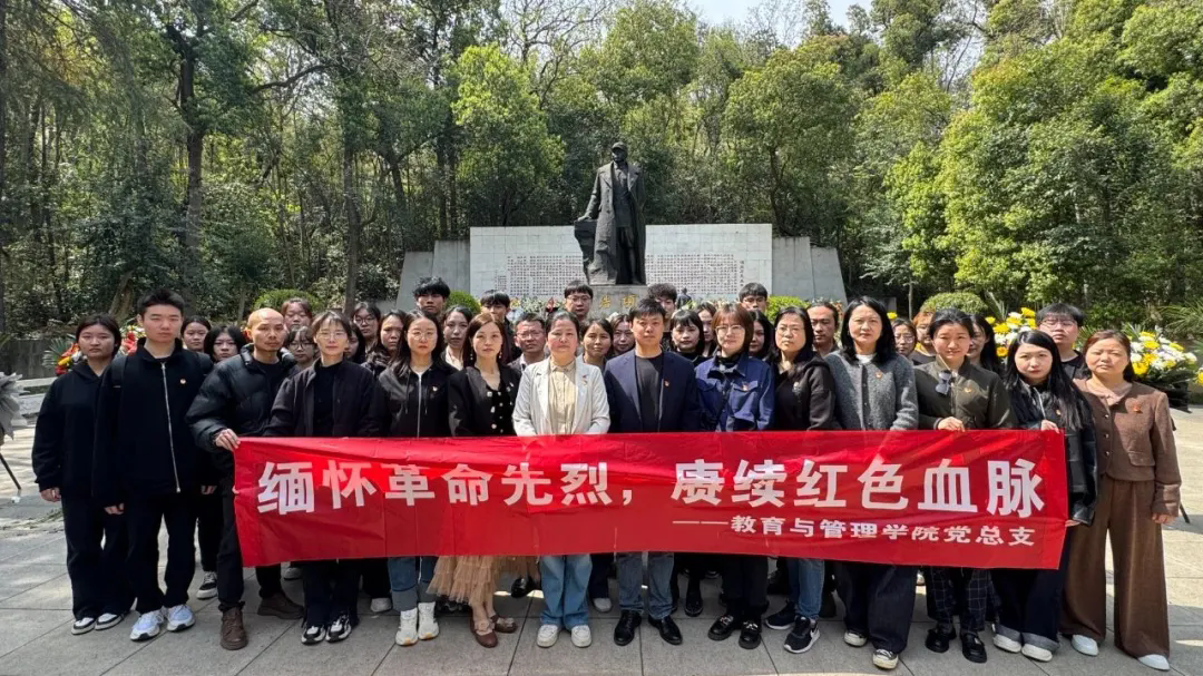 清明祭扫英烈,传承红色魂,4月3日上午,在中华民族传统节日清明节来临之际,为缅怀革命先烈、赓续红色血脉,弘扬民族精神和爱国主义精神,教育与管理学院党总支组织师生前往江夏革命烈士陵园开展清明祭扫主题党日活动。活动由教育与管理学院党总支副书记邓有创组织。