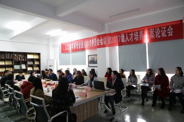 人文科学系召开专业建设指导委员会专题会议 为进一步深化校企合作,提高专业建设水平和人才培养质量,3月23日下午,人文科学系在实训楼召开了专业建设指导委员会会议暨2017级人才培养方案论证会。来自婚庆、速录、跨境电商、外贸、幼少儿培训等11家行业与企业的13位专家、代表和我校副校长孙翔、教务处负责人和人文科学系全体教师参加会议。会议由人文科学系主任陶贵芳副教授主持。