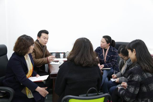 企业代表与我校教务管理人员、人文科学系教师一起探讨专业建设