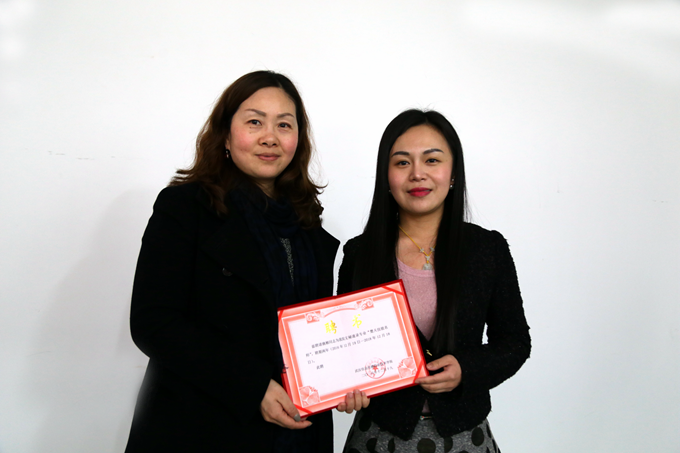 副校长孙翔为文秘速录专业楚天技能名师姚柳颁发聘书