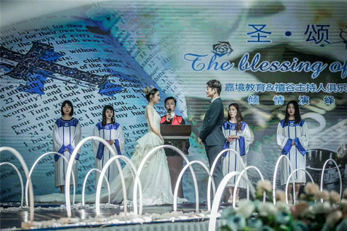 温馨浪漫的音乐、唯美梦幻的灯光、稳重帅气的司仪、身披洁白婚纱的新娘、幸福甜蜜的新人……4月22日下午,武汉绿地铂瑞酒店,人文科学系将婚庆服务与管理专业的实训课堂搬到了一场主题婚礼风尚发布会的现场,近百名学生全程参加。