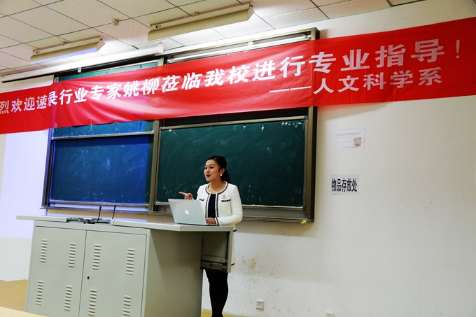 2016年3月3日下午,我校人文科学系在阶七教室举办文秘速录专业指导讲座。本次讲座邀请了武汉第一速录人——姚柳老师到场对学生进行交流与指导。文秘速录专业2014、2015级学生到会进行了认真学习。