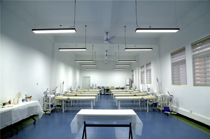 新基地占地约2800平方米,设施完备,仪器先进,对接国际标准,能够满足人物形象设计专业医学美容方向、化妆造型方向,以及世界技能大赛方向的所有课程的理论与实训,提供国际化标准教学场地。基地被批准为世界技能大赛美容项目中国集训辅基地、湖北省集训基地、武汉市集训基地,并通过国际圣迪斯哥美容博士文凭指定学校标准认证。