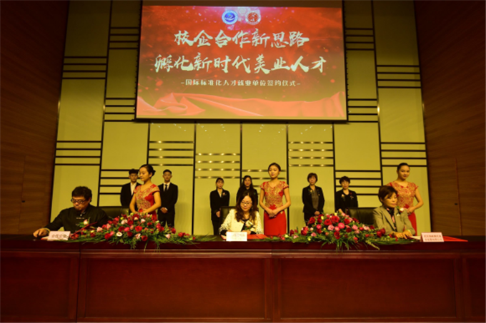 欢迎仪式上,我校携海峡形象健康管理学院,分别与杭州琴美健康管理有限公司等十家国内知名美容企业,签署校企学生就业合作协议。