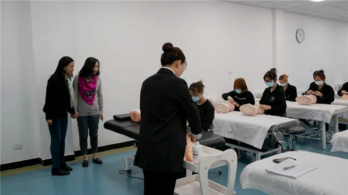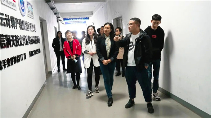 在许校长的陪同下,唐县来宾一行参观了我校人物形象设计专业实训基地。杨军华副县长对我校的办学成果及实训基地建设赞不绝口,对我校人才培养模式和质量给予了高度评价,并抛出了寻求合作的橄榄枝。