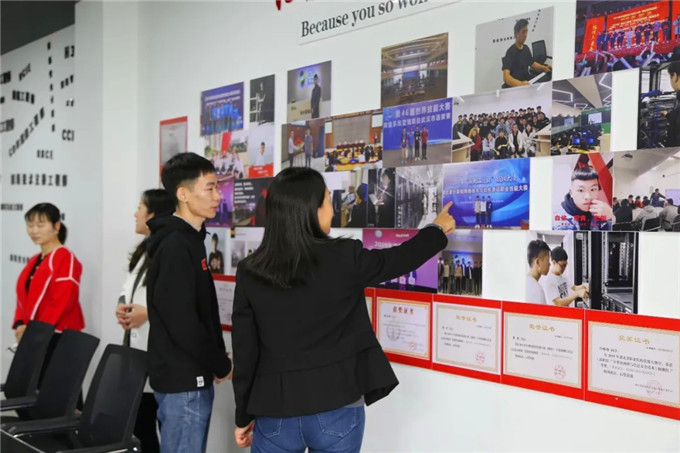 随后来宾们兴趣盎然,又先后参观了云计算、京东电商、工业机器人等多个校内实训基地。