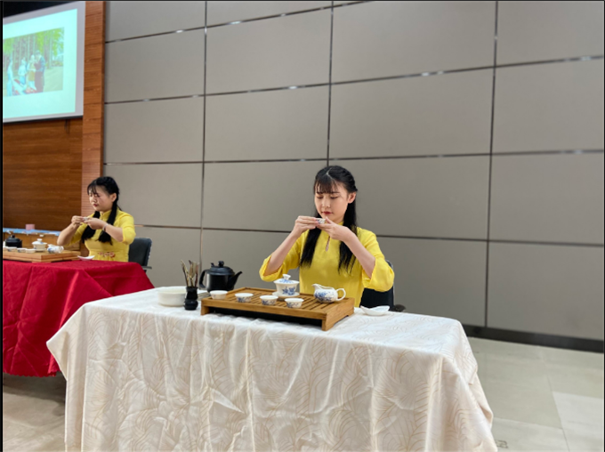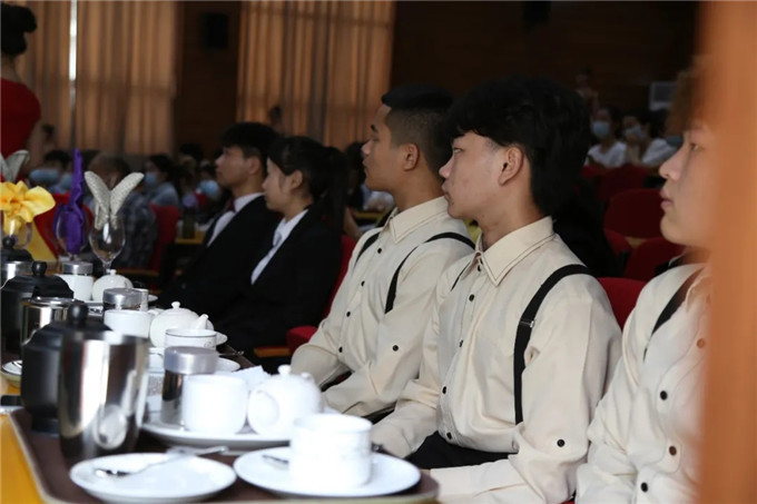 酒店管理专业的同学们一登台一亮相,精致的着装,优美的仪态,认真的态度,一下子吸引了所有人的目光。让我们一起沏茶折纸制咖啡,走进美好的文化生活吧!