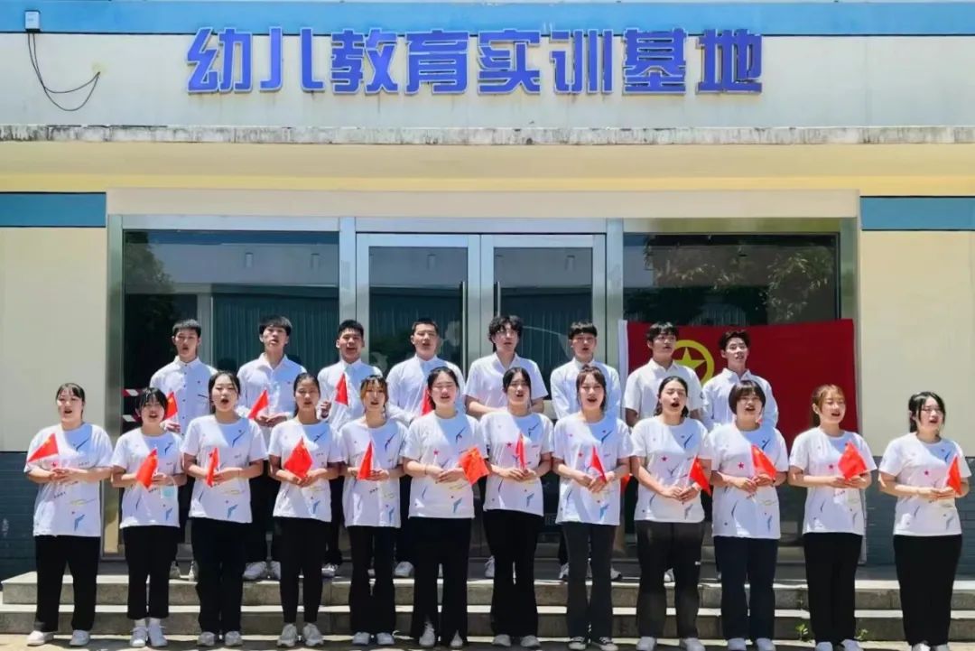 5月4日中午时分,幼儿教育实训基地前,教育与管理学院青年教师带领V-TEAM艺术团演绎的《光荣啊,中国共青团》,吸引了过往学子纷纷驻足观看。