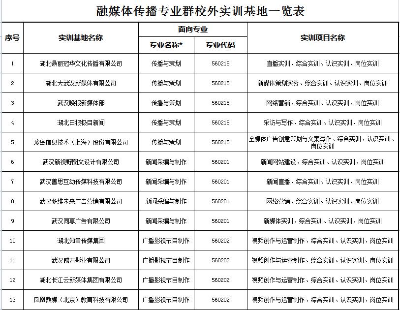 融媒体传播专业群独享湖北省内优质媒体资源,与湖北知音传媒股份有限公司打造湖北省融媒体产业协同创新中心,与湖北知音传媒集团、长江云、湖北日报、长江云、武汉晚报、梨视频、荆楚网、凤凰数媒、知音动漫有限公司、武汉两点点十分文化、新华三、金信润天等企业合作,建立了一批校外实习实训基地,实习实训保障充足,校企协同育人质量高。依托校内外实训基地,积极构建了“课堂中的职场、职场中的课堂”,引入长江网长江头条、知音动漫真实项目,在真实的工作环境和氛围下训练职业技能,培养职业素质,实现了教学过程与工作过程的对接,促进了学生知识、技能、职业素养的全面发展。