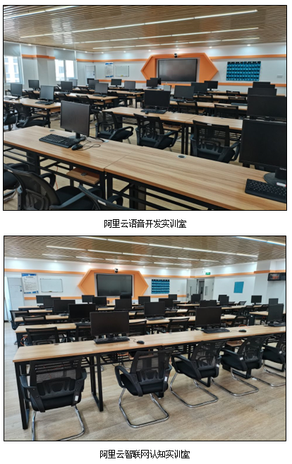 基地拥有阿里云AIBoX实训室、阿里云AIoTKiT全栈实训室等实训室5间,智慧教室3间,科技展厅1间,占地1200多平方米,工位400个,可满足人工智能技术应用专业课程教学。