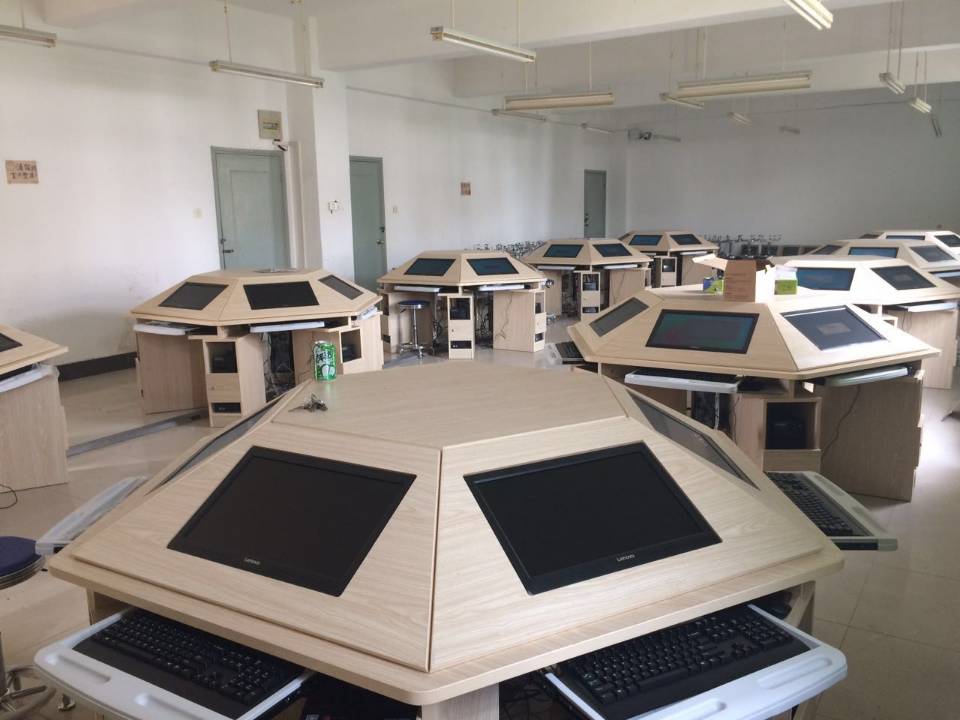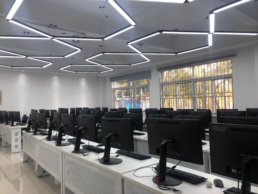 跨境电子商务实训室占地面积七十多平米,配备有高性能电脑60台、10套六边桌,1套服务器,1套多媒体设备。安装跨境电商B2B数据运营、跨境电商实战实训平台等教学软件,可同时容纳60人进行实训操作。