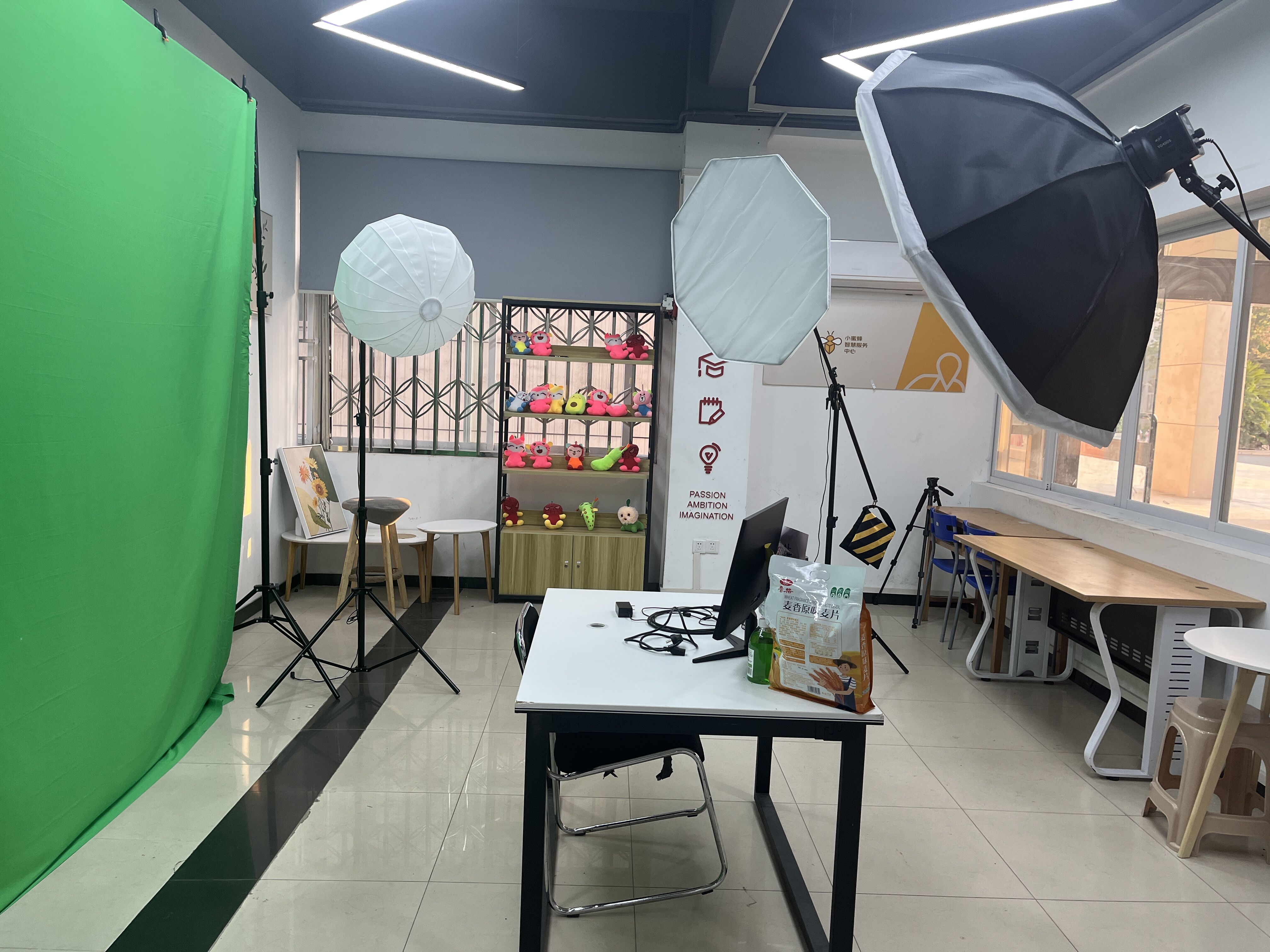 电商直播中心于2022年建成,包含直播实训室4间,配备有高性能电脑4台、高清摄像头4个、高保真话筒4个、专业声卡4个、灯光、绿幕等设备,可同时容纳20人进行实训操作。