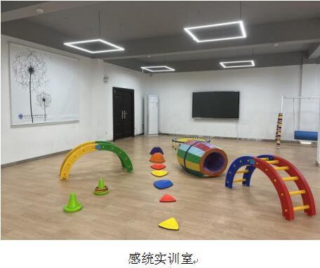 4.感统实训室:配备了各类儿童感觉统合训练器材百余种,主要供学生掌握当前早教机构广泛运用的感觉统合的各种器械操作方法、模拟讲课等。