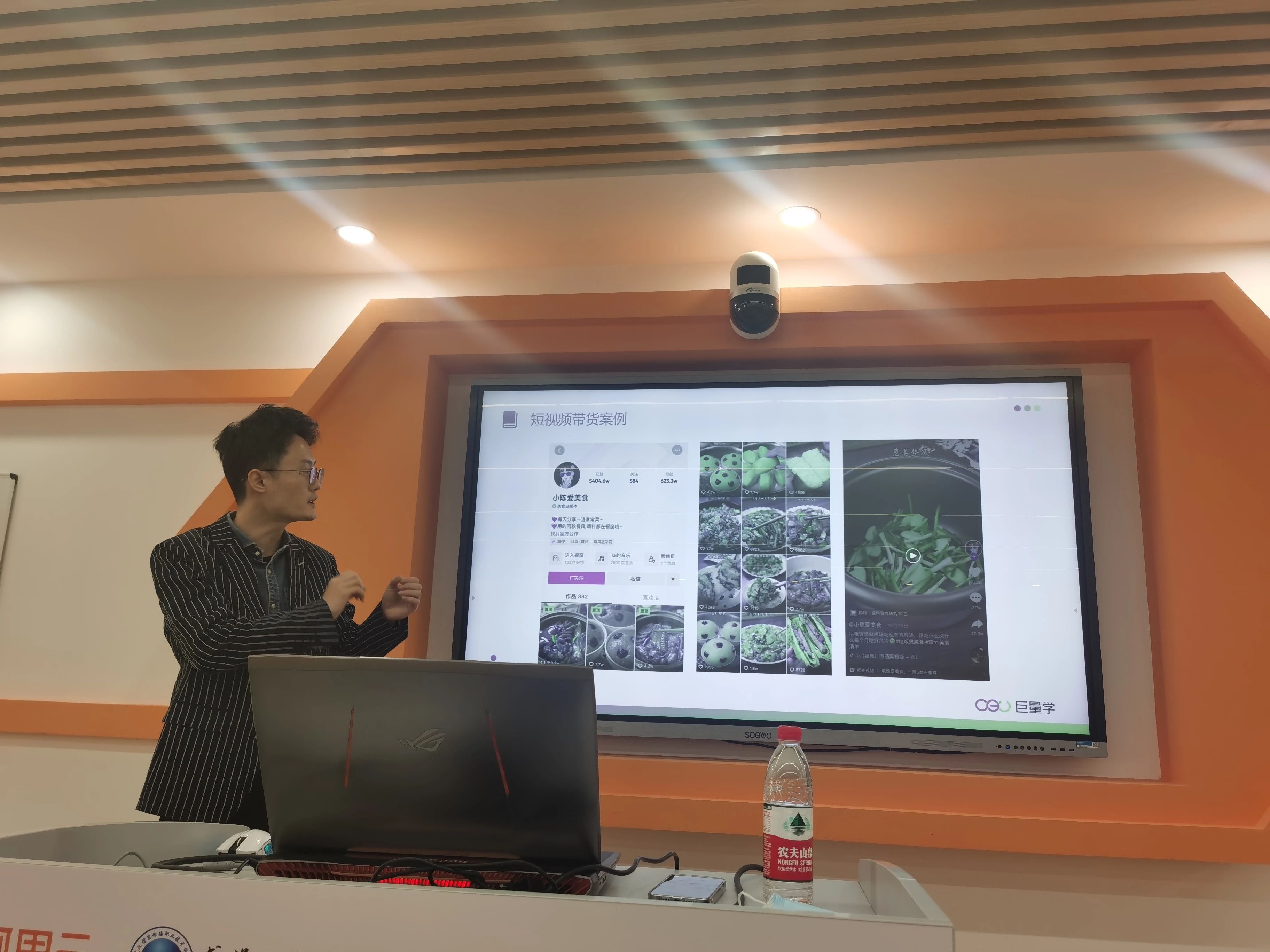 此后,金牌讲师张一严以“浅析抖音在高校教育中应用”为主题,针对我校传媒影视学院短视频及相关领域的工作岗位、就业情况、市场需求状况等信息做了详细的分析和讲解。同时对短视频未来市场和发展方向进行了预测。
