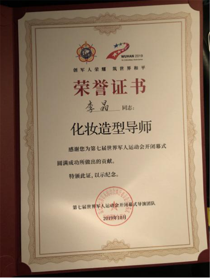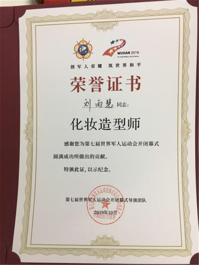 2019年12月22日,第七届世界军人运动会开闭幕式导演团队举办颁奖典礼,我校教育与管理学院荣获“化妆造型最佳组织奖”、李晶老师荣获“化妆师造型导师奖”、刘雨慧同学荣获“化妆师造型师奖”。教育与管理学院院长何叶、教学副院长童峰参加颁奖典礼。