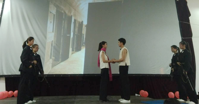 出彩的《信仰》作品是由退役复学的魏航同学结合自己曾经的军旅生活,自编自导集体编创的。魏航带领班级同学一起练习站军姿、踢正步,反复的练习使之完美呈现。观看完《信仰》,让在场的很多同学内心都萌生出了参军报国的想法。除了《信仰》外,同学们还演绎了《董存瑞》《赵一曼》《药方》《那年那月》《八女投江》《刑场上的婚礼》等红色经典作品。