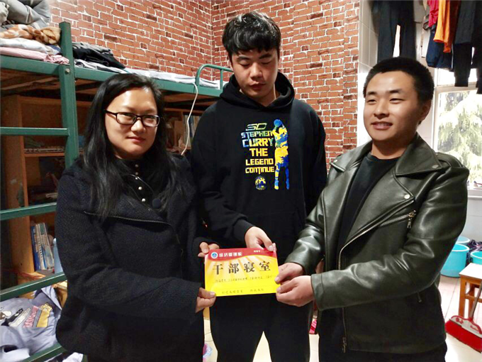 本次经济管理系“学生干部”寝室挂牌110间,全系学生党员和141名系、班团学干部全覆盖,挂牌寝室占大一、大二年级寝室比接近60%。挂牌前,系分团委在全体团学干部和各班级中作了总动员,学生党员,系、班两级学生干部积极响应。“挂牌亮明了自己的身份,就像一面镜子,时刻监督我们主动履行学生党员和干部职责。活动开展以来,同学之间都能感觉到学生干部寝室的卫生状况、文明状况发生了很大的变化,室友之间的相处也更加和睦。”预备党员、系学生会主席王斌提到。“寝室变得更加干净、整洁、温馨了。虽然我不是干部,但我看到了身边学生干部的努力。他们积极带动我们共建共创,让寝室有家的感觉。” 4209寝室的曾俞棋同学感觉到了学生干部寝室挂牌后的变化。