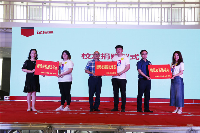 当天上午,学校在图书馆隆重举行了“思源感恩、情牵母校”校友捐赠仪式。仪式上付明建、张鹏、周正凯三位校友向母校捐赠“初心”文化石,翟娜向母校捐赠“思源”文化石,会计0602班全体同学向母校捐赠“问学”石雕书,表达对母校的感恩。副校长张秋鸣代表学校致辞,向2006级校友的归来表示热烈的欢迎,对心系母校发展的校友们表达感谢。副校长张秋鸣、尤敏和经济管理系负责人李静荣为捐赠者颁发了纪念证书。捐赠仪式结束后,校领导、经济管理系和相关职能部门负责人、返校校友和在校师生代表100余人,共同见证了三块文化石的揭幕。揭幕现场,大家用响亮的掌声向捐赠者致敬,向校友的感恩之心致敬。“当年我从山西到武信求学三载,武信是我的港湾、是我最坚强的后盾。毕业十年了,我们要用努力的工作成绩回报武信,让自己成为母校的后盾。我个人向母校捐赠‘思源’文化石,就是向母校表达饮水思源之恩。也希望武信的校友们和在校的学弟学妹们也学会知恩报恩,常怀感恩之心。”校友翟娜非常激动地说。看着立于学校大门入口处的“初心”文化石,捐赠者之一付明建说:“今天我们回母校,就是追问我们的初心。毕业十年,无论我们在哪,无论我们为社会做出什么样的成绩,都不能忘了母校的培育,都不能忘了来时路。‘初心’篆刻于石上,也铭刻在我们心底。也希望一届届学弟学妹牢记自己的初心,让青春在武信绽放出更加艳丽的色彩。”