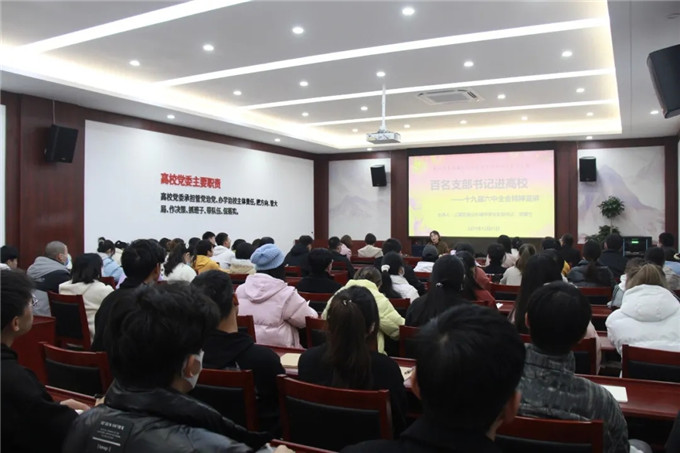 本次主题党日活动,是我校深入落实湖北省教育厅“百名支部书记进高校”系列活动之一,旨在推动党的十九届六中全会精神宣讲深入师生,做到全覆盖,推动习近平新时代中国特色社会主义思想入脑入心,加强学生党支部思想政治建设和青年学子的政治引领。下一步,学校还将进一步推进“十进十讲”工作。