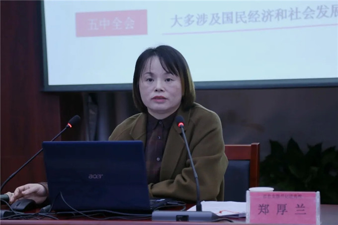 12月21日下午,“百名支部书记进高校”主题党日活动在居正厅开讲。郑厚兰书记从自己的亲身经历和切身感受出发,聚焦党的十九届六中全会,介绍了会议的召开背景、党的百年奋斗重大成就、历史经验,带领青年学生回顾党的百年奋斗历程,感悟伟大建党精神内涵,深刻领会十九届六中全会的历史意义。