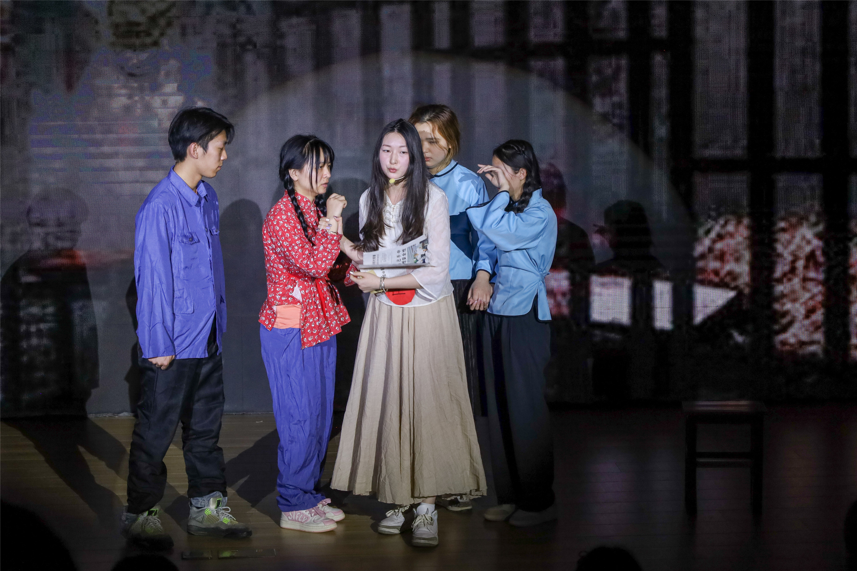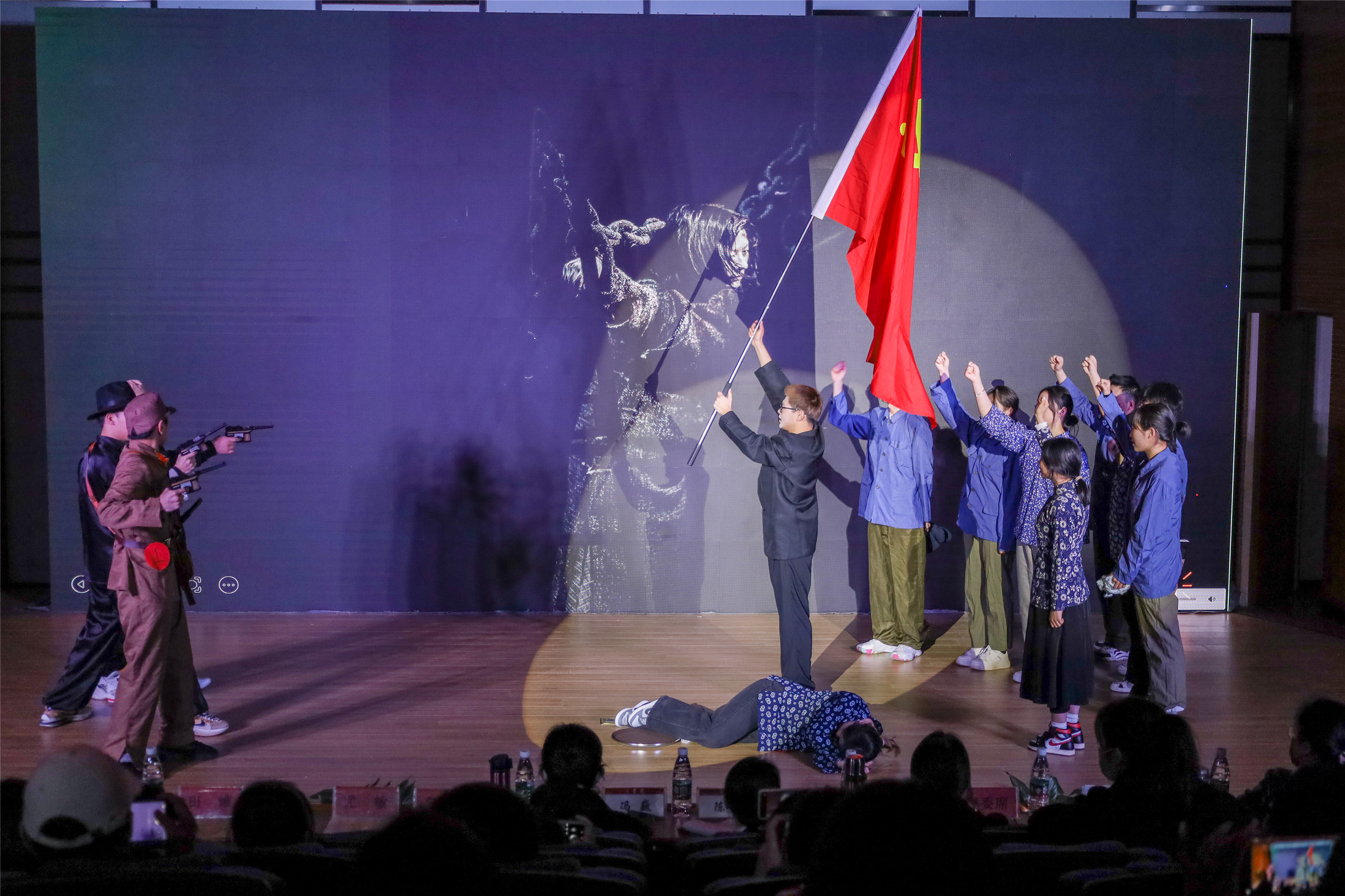 在当天的演出中,第三届“百变经典”演员之一的2015届毕业生王珏玮再次返回舞台参演。他以配音和肢体语言演绎闻一多《最后一次演讲》,深刻再现闻一多大无畏的牺牲精神。“重回‘百变经典’舞台,心中感慨万千。很欣慰,十年来,大家一届届演绎红色故事,一届届传承着红色精神。”王珏玮激动地说。2022级电子商务专业熊小年谈到:“虽然我的演技有些朴拙,但通过参与第十届‘百变经典’,演绎李大钊的故事,让我深深感受了革命先驱对救国救民真理的不懈追求。”