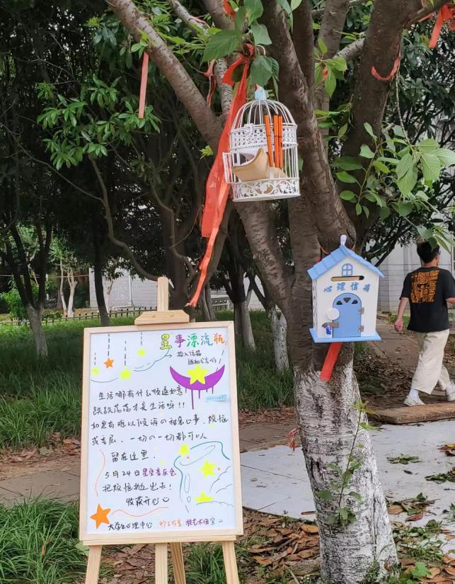 一个星期以前,我们将“星事漂流瓶”“心语信箱”放置于校园樱花大道的许愿树上,同学们有任何心事都可以向信箱匿名倾诉。