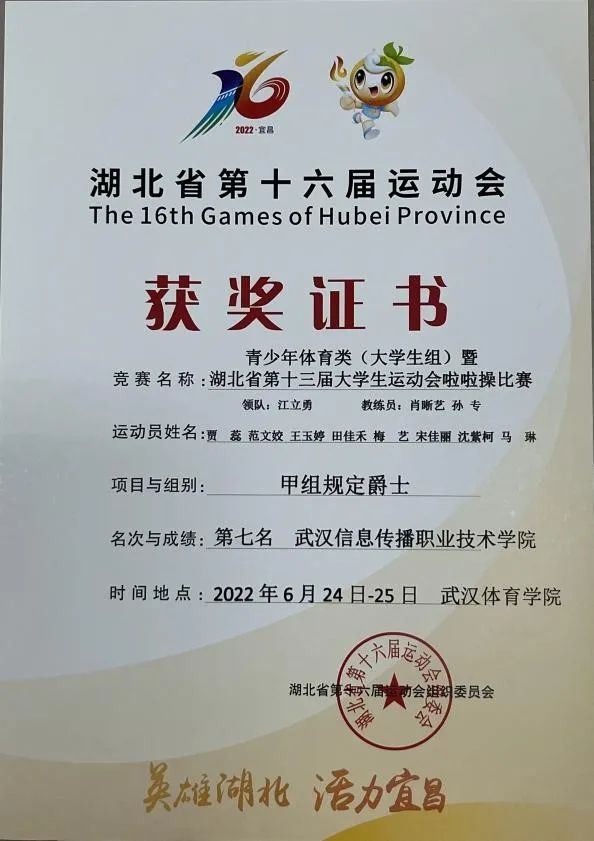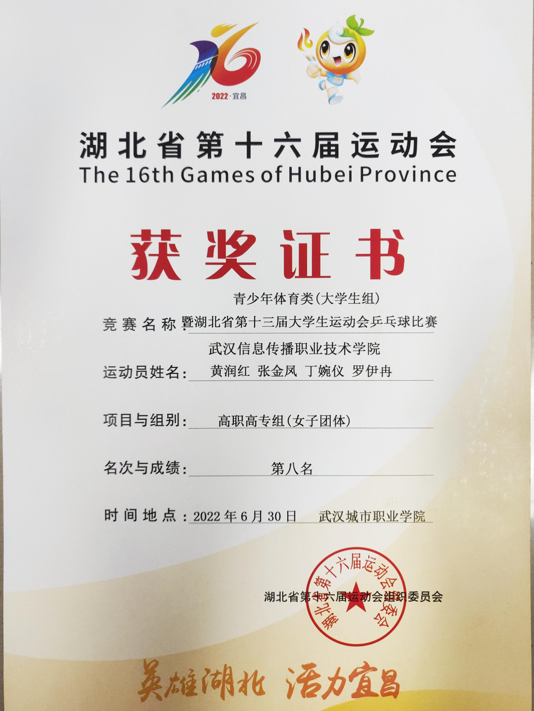 好消息!在近日举办的湖北省第十六届运动会青少年体育类(大学生组)暨湖北省第十三届大学生运动会上,我校学子用拼搏和汗水,在乒乓球和啦啦操赛项中都取得了不俗成绩。