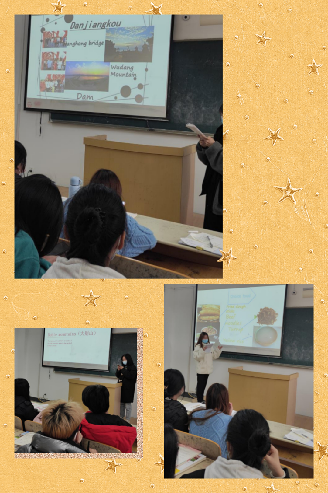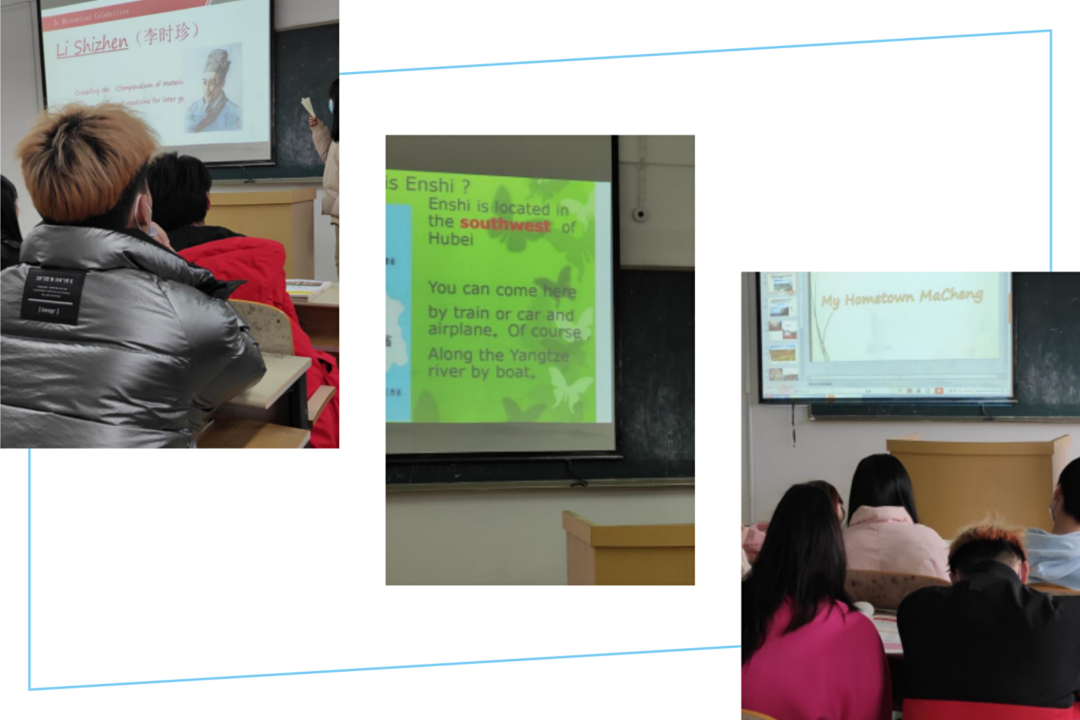 “Amazing Hubei”活动是本学期英语课程组实践教学的特色之一,也是思政学院实施课程思政的具体举措,培养学生用英语讲好中国故事的意识和能力。在该活动中,英语课程组教师积极鼓励学生以个人或小组的形式用英文介绍、推荐自己的家乡。2020级学生对此项活动兴趣浓厚,通过PPT展示、小组汇报和视频制作的形式介绍了自己家乡的景点、美食、文化和名人,抒发了自己对家乡的热爱之情。