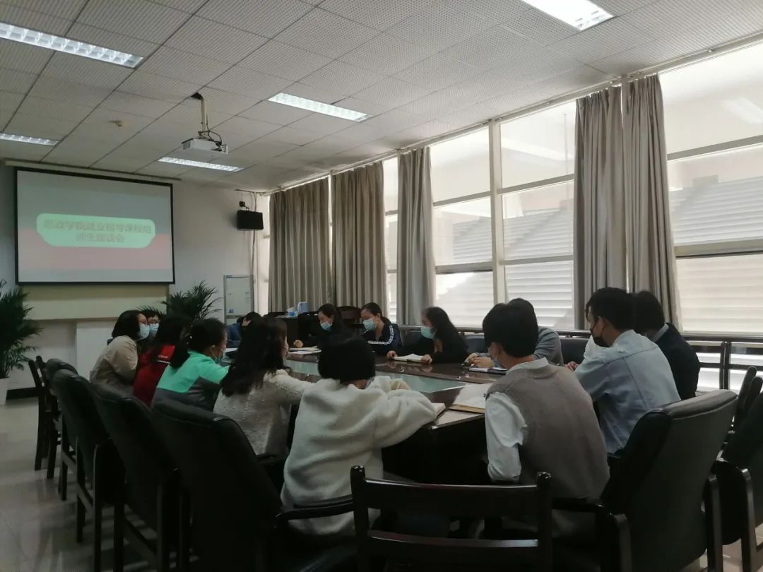 2019级、2020级学生代表就课程安排、课堂教学中的优点和不足集中反馈,提出意见和建议。就业指导课程组专兼职教师就课程建设、教学组织、课堂管理、教学改革等方面做了深入交流。思政学院教学副院长对规范课程管理提出要求,一是要认真学习相关政策和教学管理文件,规范授课;二是要进一步深化教育教学改革,在课程体系建设、教学方法、考核评价、教材建设等环节有研讨;三是要着力引导学生认清就业形势,树立正确的就业观,增强创新意识和创新创业能力,为学院人才培养提供有力支撑。