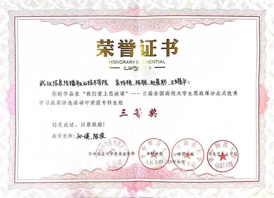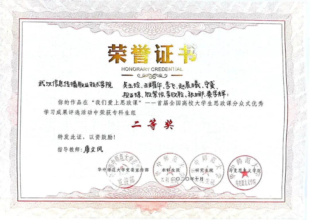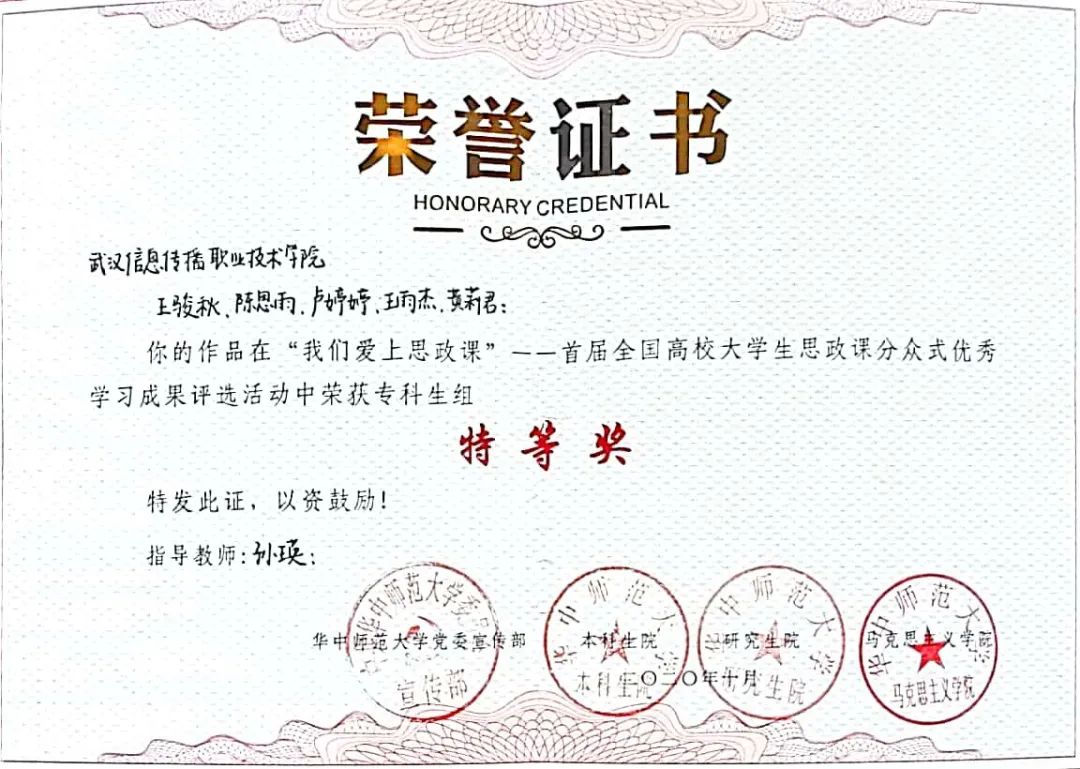 去年11月,我校2019级学生团队参加了由华中师范大学主办的“我们爱上思政课”首届全国高校大学生思政课分众式优秀成果评选活动。
