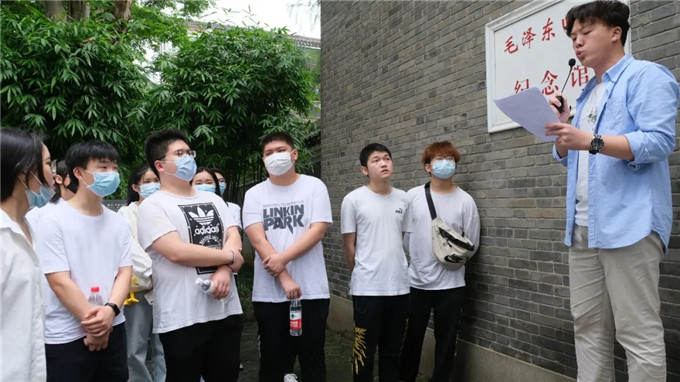 “1927年上半年,毛泽东同志在武昌从事革命活动。毛泽东在此期间主办了中国国民党中央农民运动讲习所、筹备成立并领导了中华全国农民协会、撰写了中共领导农民运动的重要文献——《湖南农民运动考察报告》。当时的毛泽东和我们一样,也正值青春年华。”在紧邻中共五大会址纪念馆的毛泽东同志旧居,徐毅鸣同学当起了“讲解员”。本次思政课还让学生主动讲,以朋辈的语言,使同学们做到学史明理、学史增信。