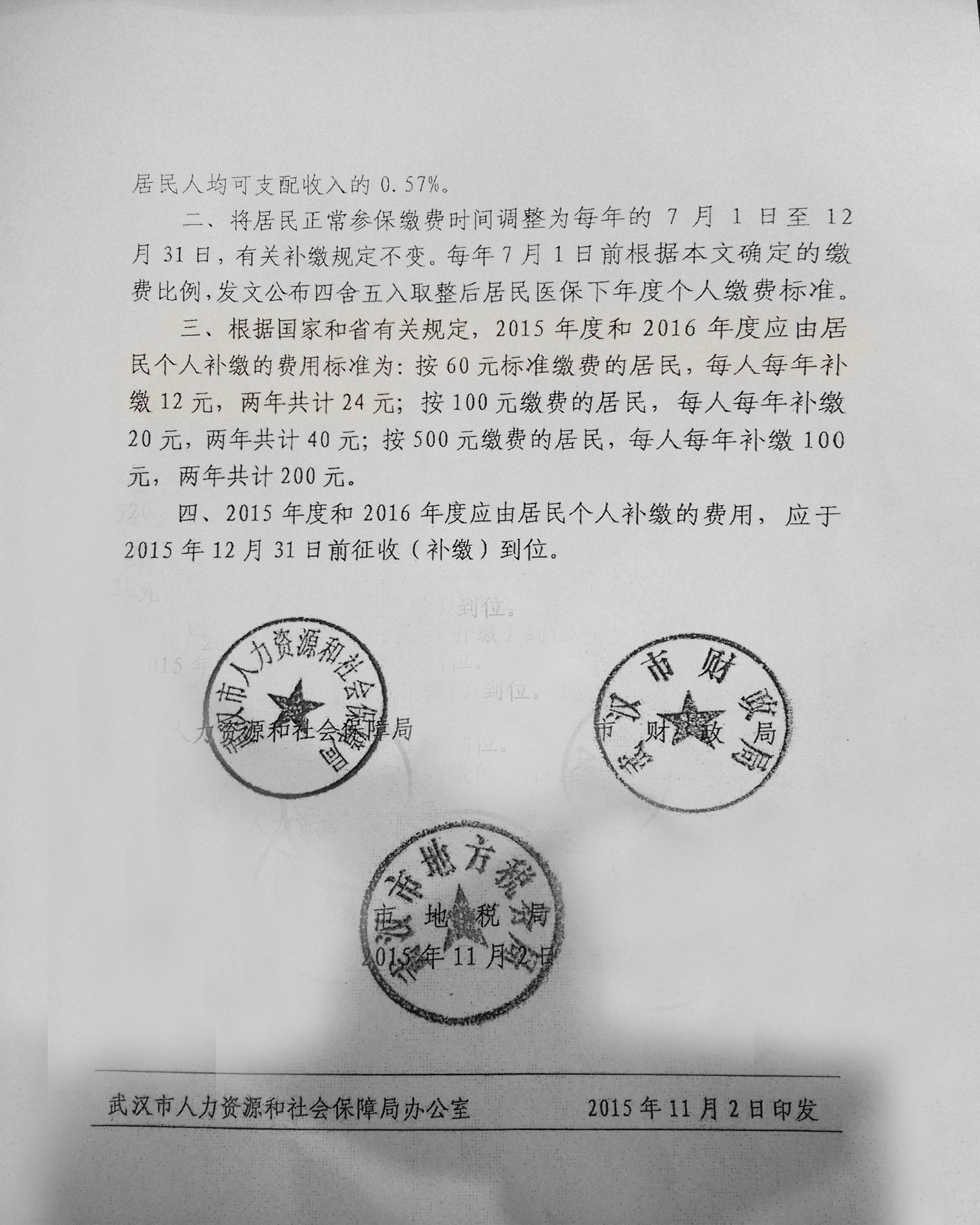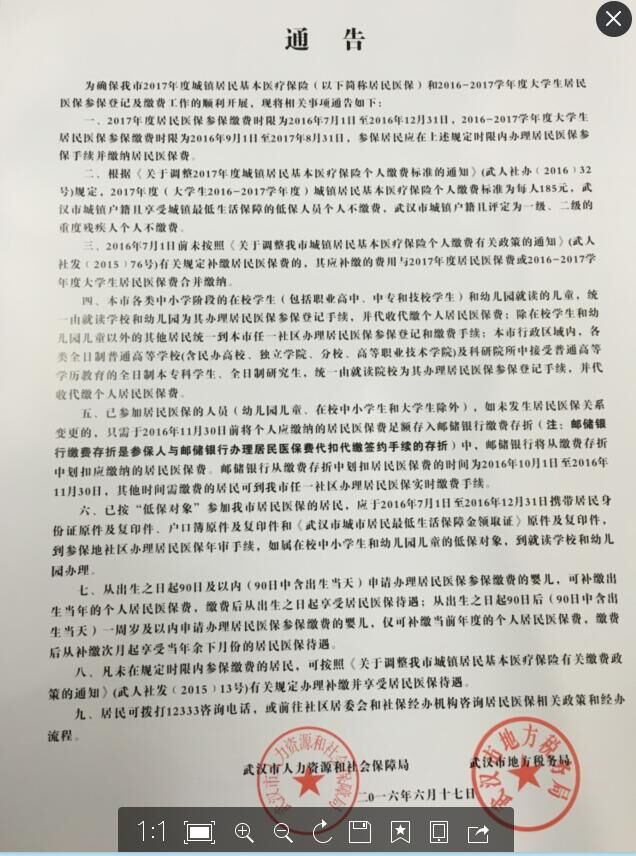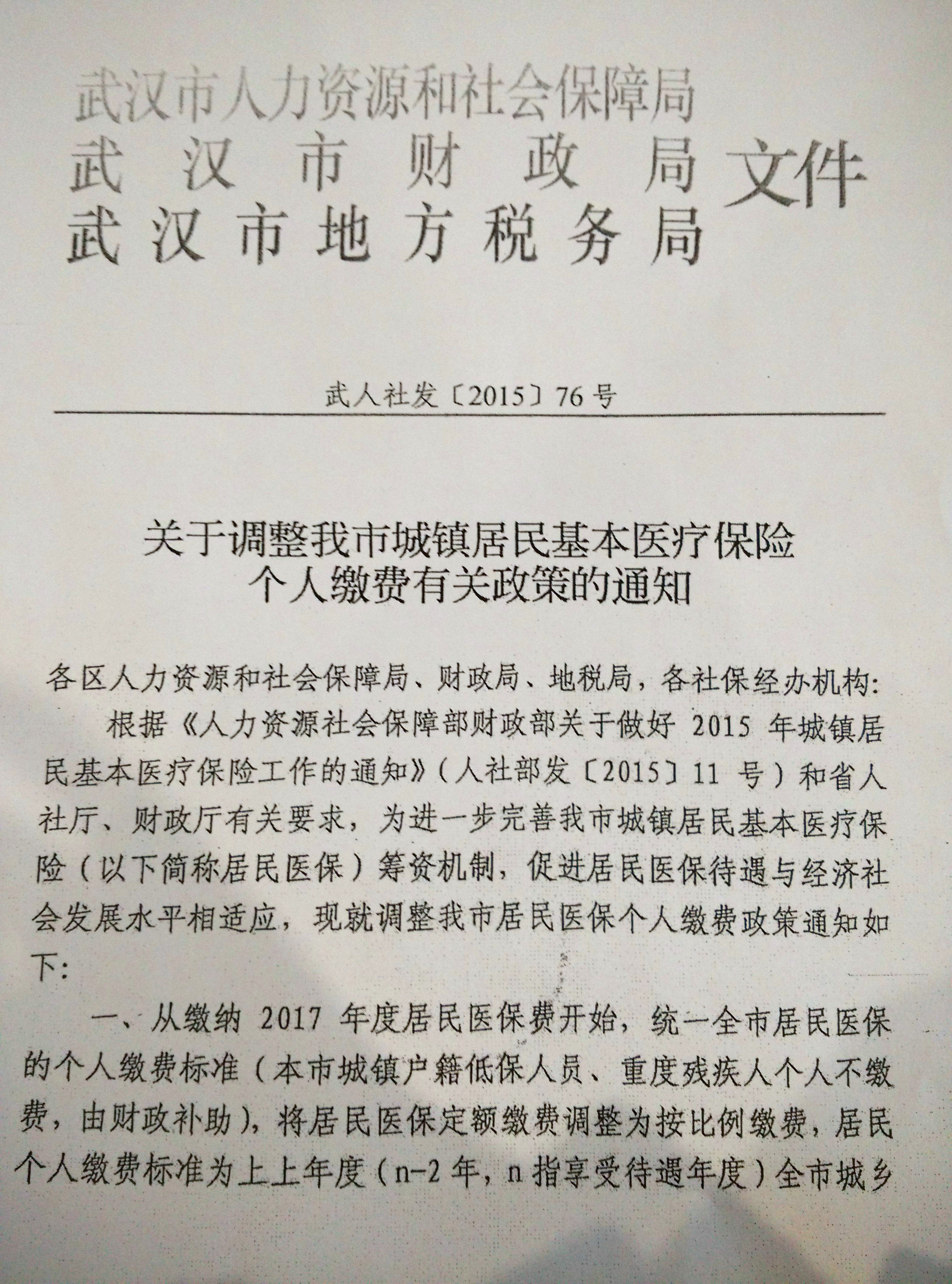 相关文件见下图:1.武人社发(2015)76号文1、1.武人社发(2015)76号文2 、3.2016-2017学年大学生医保通告。