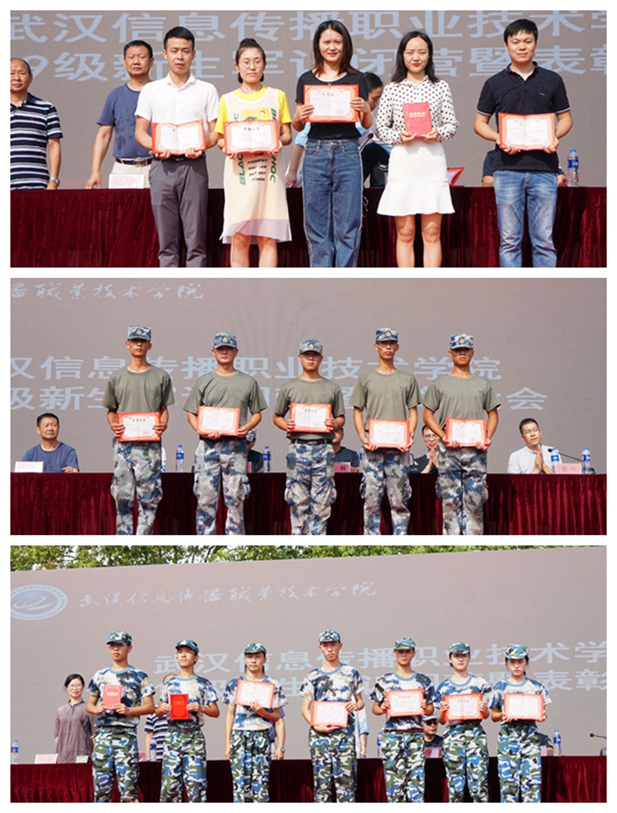汇报表演结束后,大会表彰了军训先进集体和个人,军体拳、花样方队、一营三连等5个连队荣获优秀连队称号,杨光等5名教官荣获优秀教官称号、杨庆等5名辅导员荣获优秀辅导员称号,黄珊等154名新生荣获优秀学员称号。优秀学员代表黄珊同学分享了军训带来自身改变,特别感谢老师和教官的教导,表示在以后的生活学习中,将以军训标准严格要求自己,努力学习,圆满完成学业。