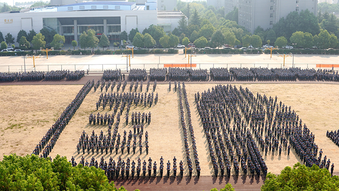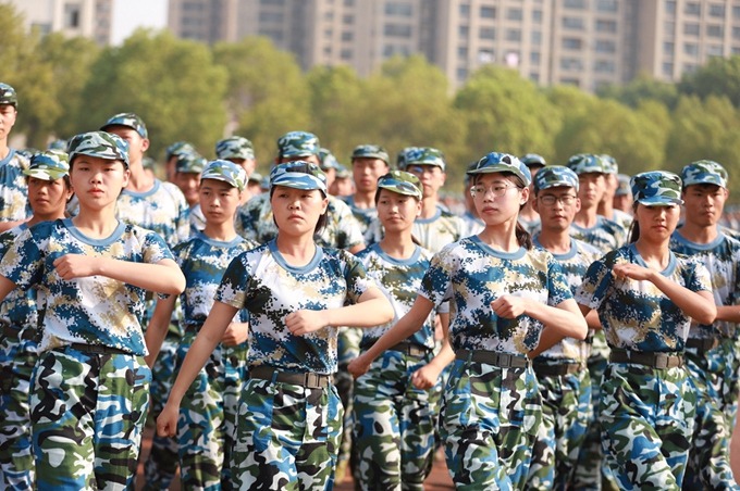 随着许婷校长的一声令下,十六个军训方队踏着《分列式进行曲》,迈着整齐的步伐,口号嘹亮,依次严整地通过主席台,自信展示军训成果。新生军姿挺拔、精神抖擞、动作划一,表现出“00后”大学生健康阳光向上的精神风貌。