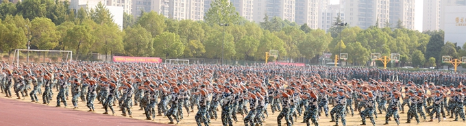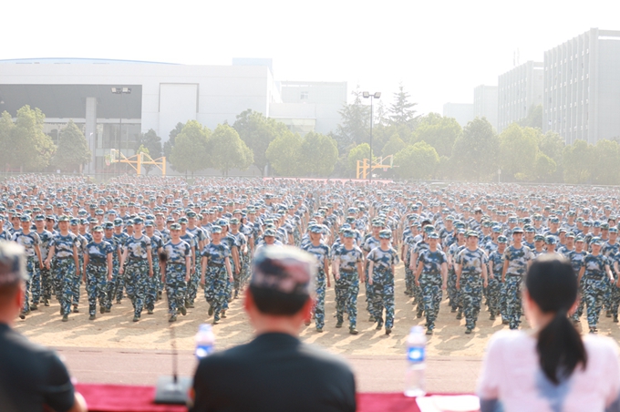 我校副校长尤敏向圆满完成军训任务的全体新生表示热烈的祝贺,肯定了同学们的训练成绩。他希望同学们以军训为起点,将军训中的国防教育融入到具体爱国行动中,将军训中培养的优良作风继续保持下去,融入日常学习生活中,在精彩的大学生活中奋发拼搏。