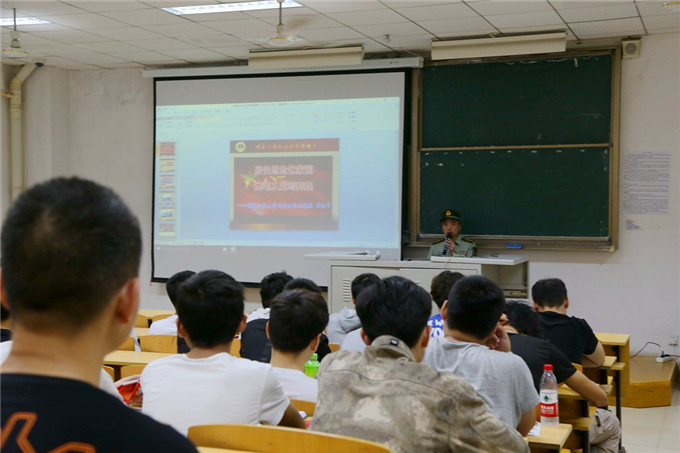 随后,黄友牛教授为同学们作了我国国防建设专题报告,梳理了党的十八大以来我国加强军队国防建设的重要举措,分析了我国国防安全形势和强军梦对青年人才的需求。黄友牛教授慷慨激昂的报告,让同学们备受鼓舞,激发了同学们参军报国的热情。