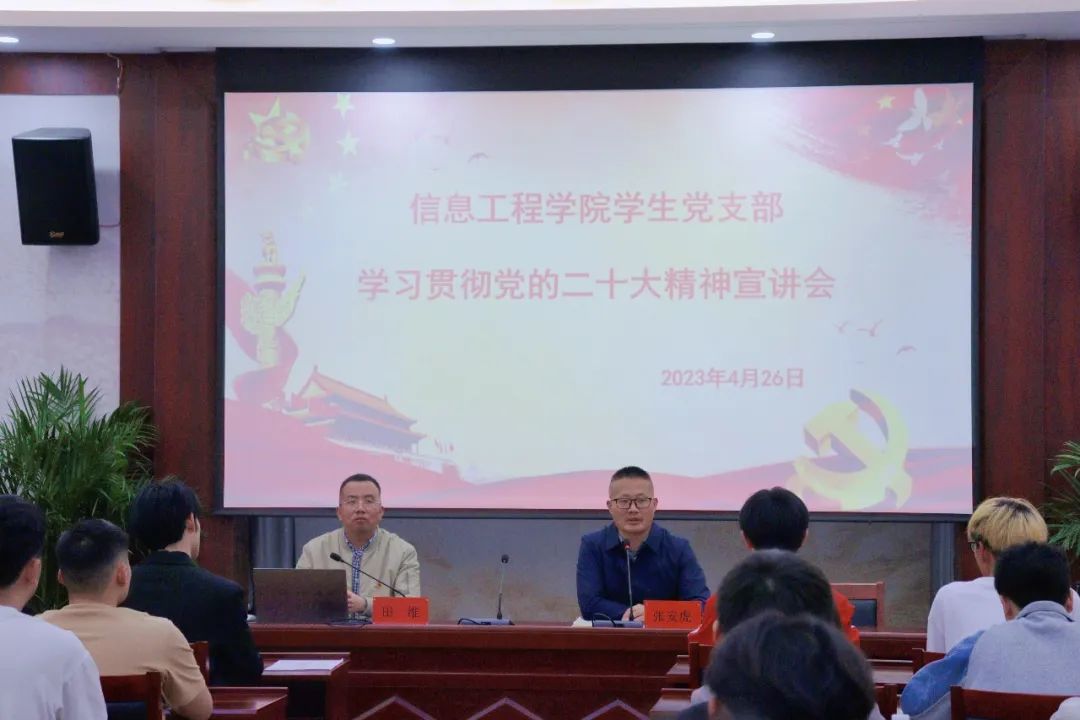 4月26日晚,为深入学习贯彻党的二十大精神,推动党史学习教育常态化长效化,信息工程学院学生党支部邀请学校党委宣传部部长田维老师讲授红歌主题党课,通过“歌声中的党史”带领学院学生党员、入党积极分子重温中国共产党百年光辉历史,唱响爱党爱国心声。