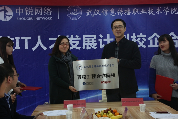 我校是湖北地区第一个全面适应中锐网络设备、中锐产品与技术标准、落地中锐“导师工作室”和中锐课程体系的高职院校。我校将联手中锐网络合作建设集“学、训、产”三位一体的网络工程人才培养基地,在人才培养上将更加重视实训,更加紧密结合行业前沿发展的技术,更加着眼于行业对人才的需求标准,着力培养工程型、复合型、应用型网络专业人才,使我校真正成为“互联网+”人才的孵化器。(信息工程系)