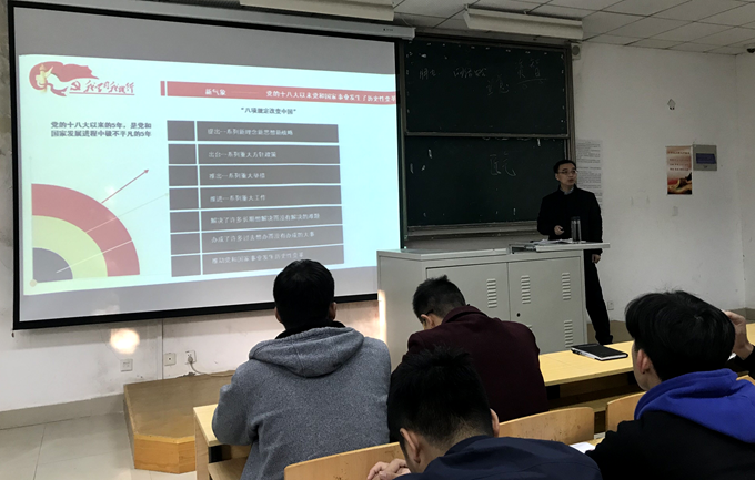 “校领导来给我们上党课了!”“听了校领导对十九大精神的讲解,让我对党的了解又更进了一步。”“新时代,我们青年大学生也要让我们的青春梦想澎湃起来!”听了尤敏副校长的报告后,同学们纷纷感慨。