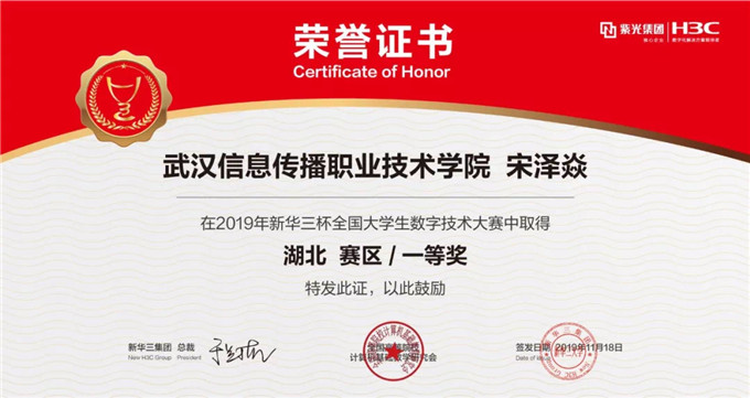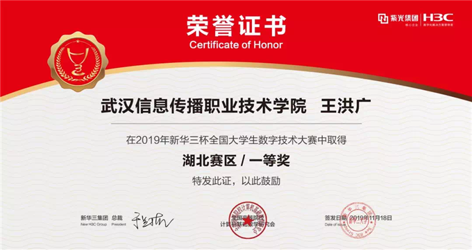 近日,2019年“新华三杯”全国大学生数字技术大赛湖北赛区比赛圆满落幕,我校作为此次大赛分赛场,信息工程学院积极组织,学生参赛热情高涨,共有218名同学参加了角逐。经过激烈鏖战,我校获得一等奖45人、二等奖54人、三等奖34人,创下一、二等奖人数高职类全省第一的佳绩。其中云计算技术与应用专业王洪广、计算机网络技术专业宋泽焱两位同学晋级杭州全国总决赛。