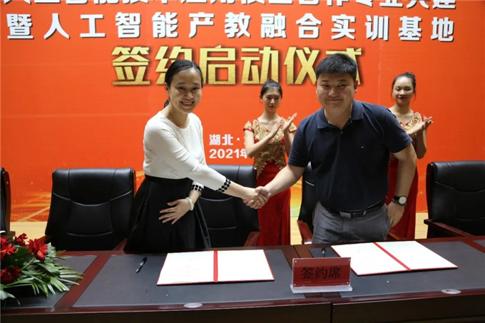 在现场嘉宾和师生的见证下,校企代表签约,全新开启人工智能领域校企合作。