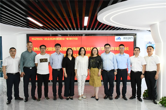 为深入落实高校毕业生就业工作“一把手”工程,同时推进落实职业教育提质培优行动计划,深化产教融合校企合作,5月25日,我校党委书记、校长许婷,副校长孙翔,祝小兵,信息工程学院、就业创业指导处负责人等一行,赴北京金信润天信息技术股份有限公司武汉分公司(以下简称“金信润天”)走访、调研和交流。